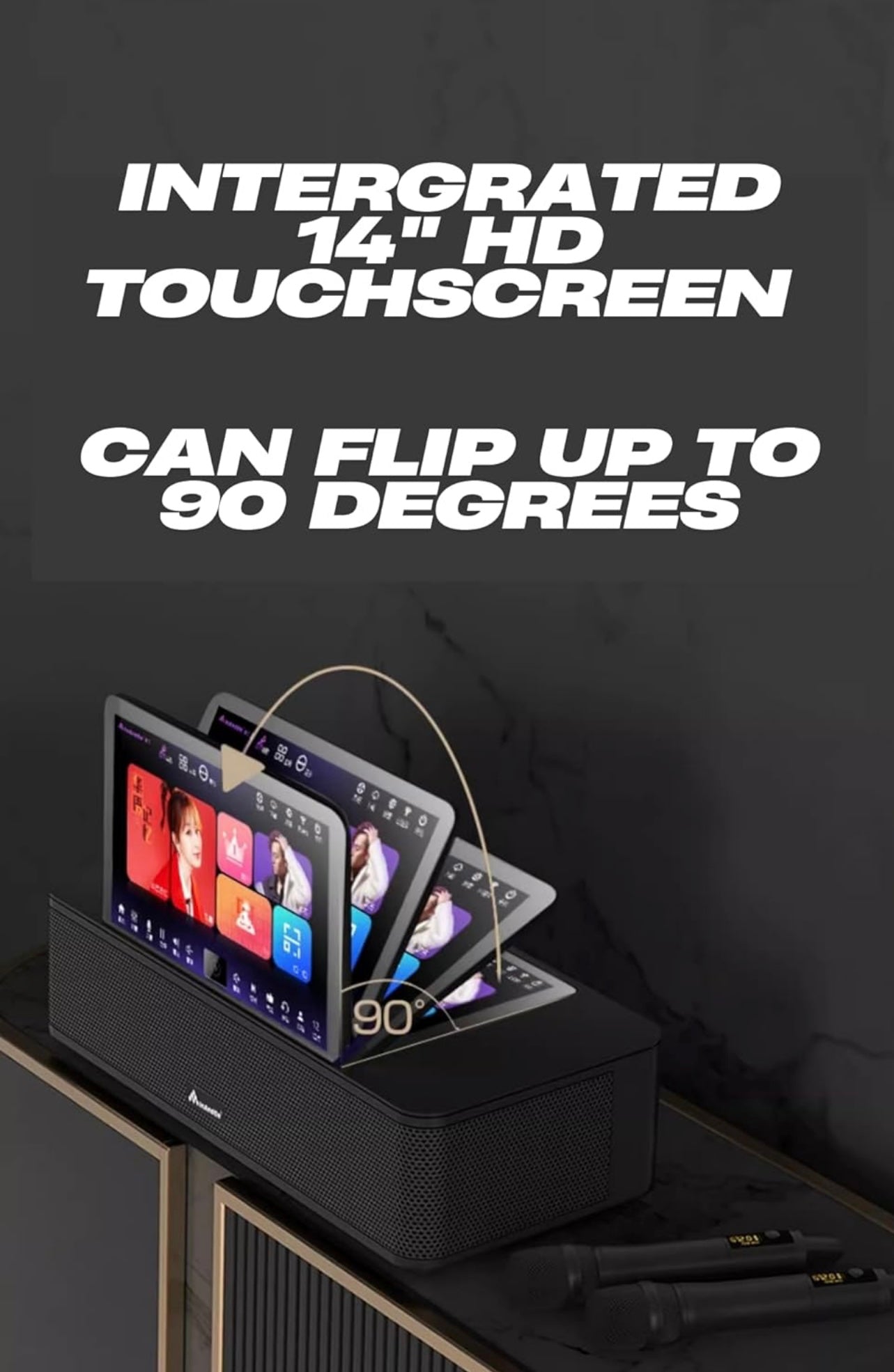 - All-in-One Design: The KV-MS9 Max integrates a powerful soundbar, karaoke player, and 14" HD Touchscreen into one compact unit, eliminating the need for complex setups. Simply plug and play!